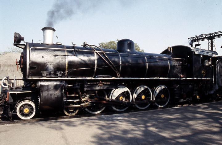 In an earlier version of this page I hazarded a guess that the locomotive may have been made in Europe, possibly Germany, but on November 8, 2010 Eric Boswell kindly wrote the following: “I do believe I can clear up the uncertainty you are having with your fine picture of Locomotive No. 204. She is in fact a 12th Class of the former Rhodesia Railways and was built by the North British Locomotive Co. in Scotland. I fired these lovely engines when staioned at Brok From en Hill (now Kabwe) and we worked double headed to Ndola on the copperbelt. I also fired the magnificent 20th class Garretts, 15th class 14a's etc etc .What memories of a truly well run system which sadly has dwindled to a shadow of a shadow.”